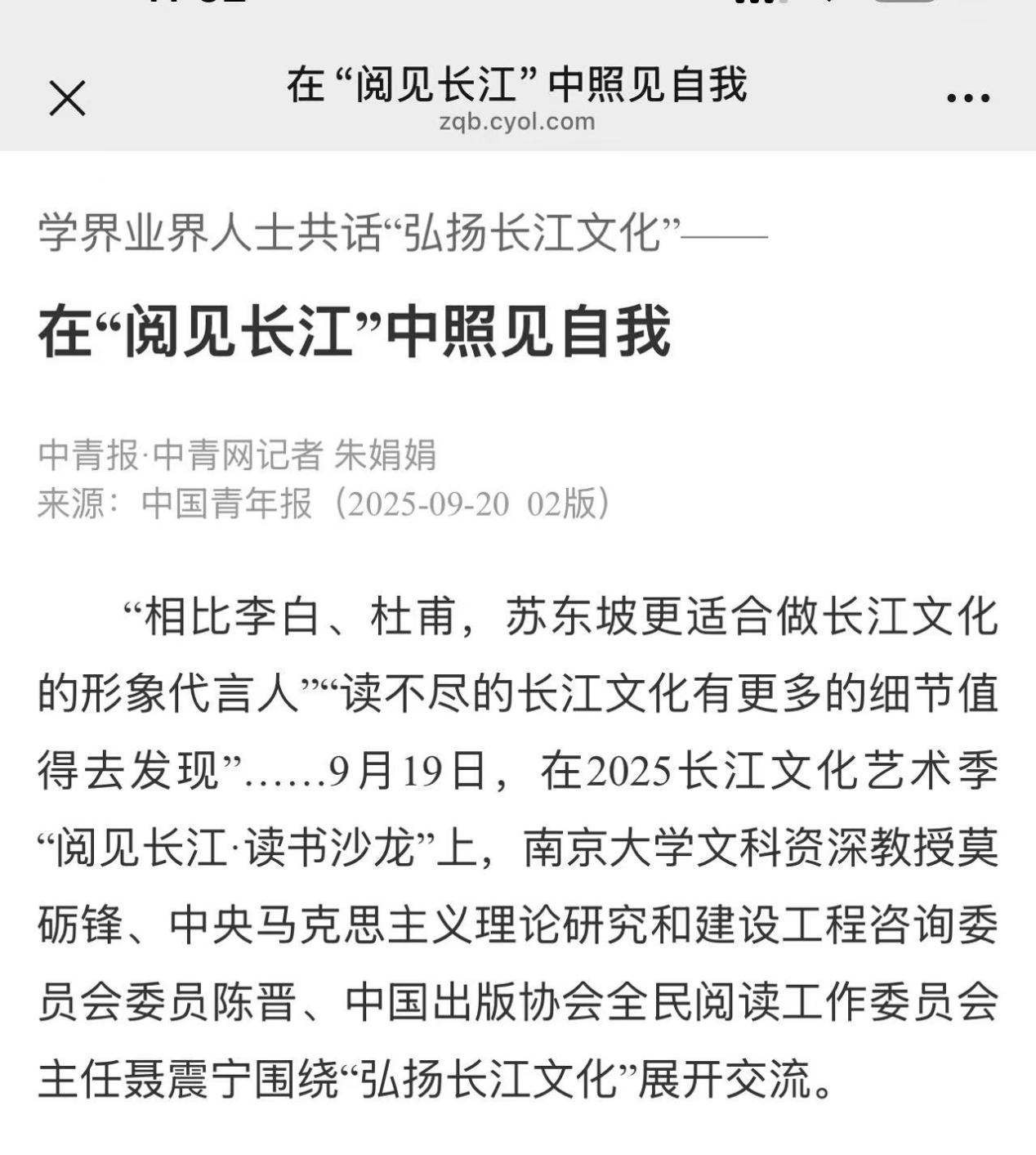 中國青年報(bào) | 學(xué)界業(yè)界人士共話“弘揚(yáng)長江文化”——在“閱見長江”中照見自我