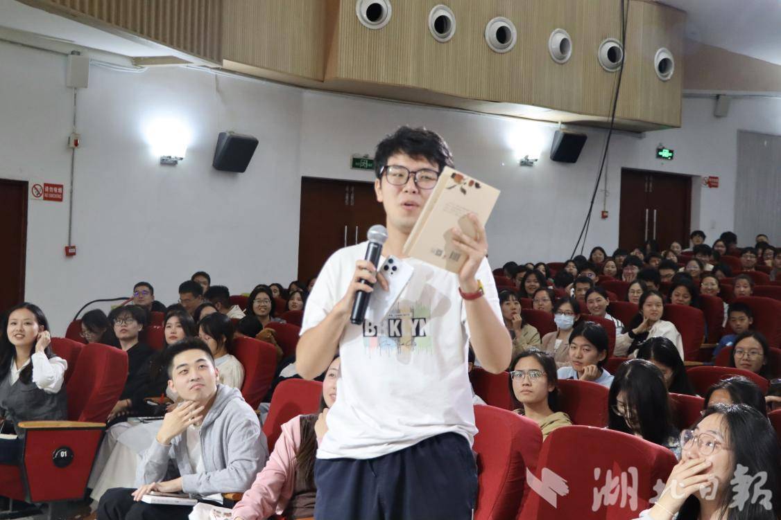 在提問環(huán)節(jié),中南民大一名男生說:“現(xiàn)在就讀漢語言文學(xué)專業(yè),發(fā)現(xiàn)與想象中不太一樣?!瘪R伯庸幽默地說:“漢語言文學(xué)專業(yè)雖然不一定培養(yǎng)作家,但你可能成為作家?!彼f,漢語言文學(xué)專業(yè)更多是研究文學(xué)作品,而寫作是創(chuàng)意寫作。這名男生也幽默地回應(yīng):“我一定能成為中國文學(xué)史上留下一筆的作家?!?/p>