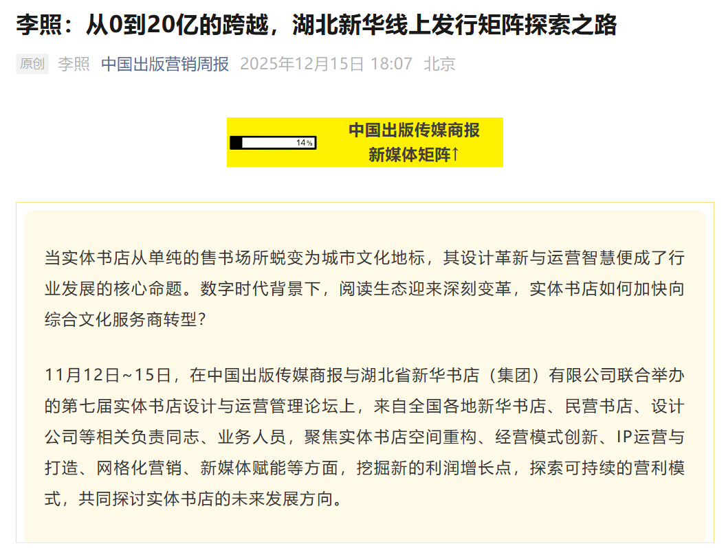 中國出版營銷周報 | 李照:從0到20億的跨越,湖北新華線上發(fā)行矩陣探索之路