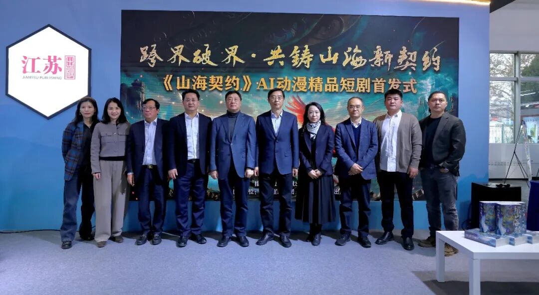 江蘇鳳凰文藝出版社運用AI賦能出版IP運營,圖為2026北京圖書訂貨會上舉辦的《山海契約》AI動漫精品短劇首發(fā)式。
