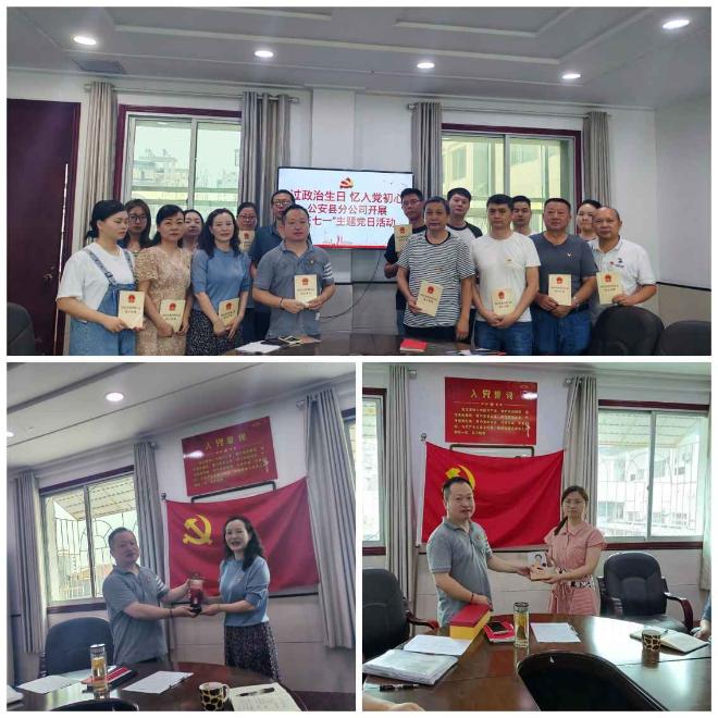 本網(wǎng)訊(通訊員嚴(yán)雪雅、責(zé)任編輯葉珂)7月1日,為慶祝中國共產(chǎn)黨成立103周年,公安縣分公司組織全體黨員開展“重溫入黨誓詞、牢記黨員身份、同過政治生日”支部主題黨日活動(dòng)。活動(dòng)由黨支部書記龔關(guān)主持。