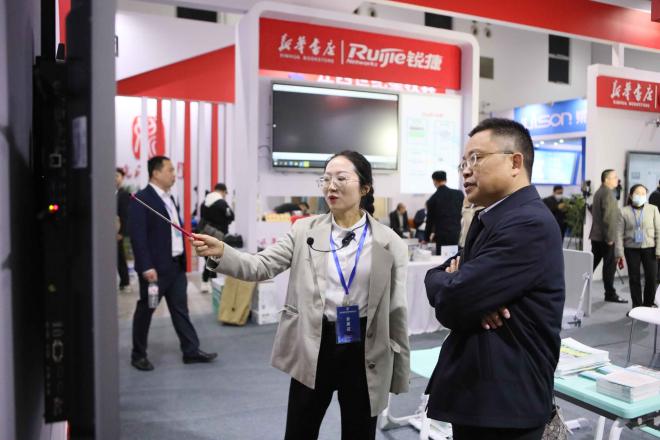 展會首日,中國教育裝備行業(yè)協(xié)會副會長夏國明、湖北省教育廳教育技術(shù)裝備處處長朱圣芳蒞臨展位,并聽取文教公司負(fù)責(zé)人李明輝作相關(guān)介紹。兩位領(lǐng)導(dǎo)對新華書店集團(tuán)近幾年在教育裝備、教育信息化領(lǐng)域取得的成績表示肯定,希望新華書店集團(tuán)繼續(xù)發(fā)揮國有文化企業(yè)的優(yōu)勢,致力于湖北省教育裝備行業(yè)的蓬勃發(fā)展,服務(wù)好廣大師生,共同筑牢行業(yè)發(fā)展基石。